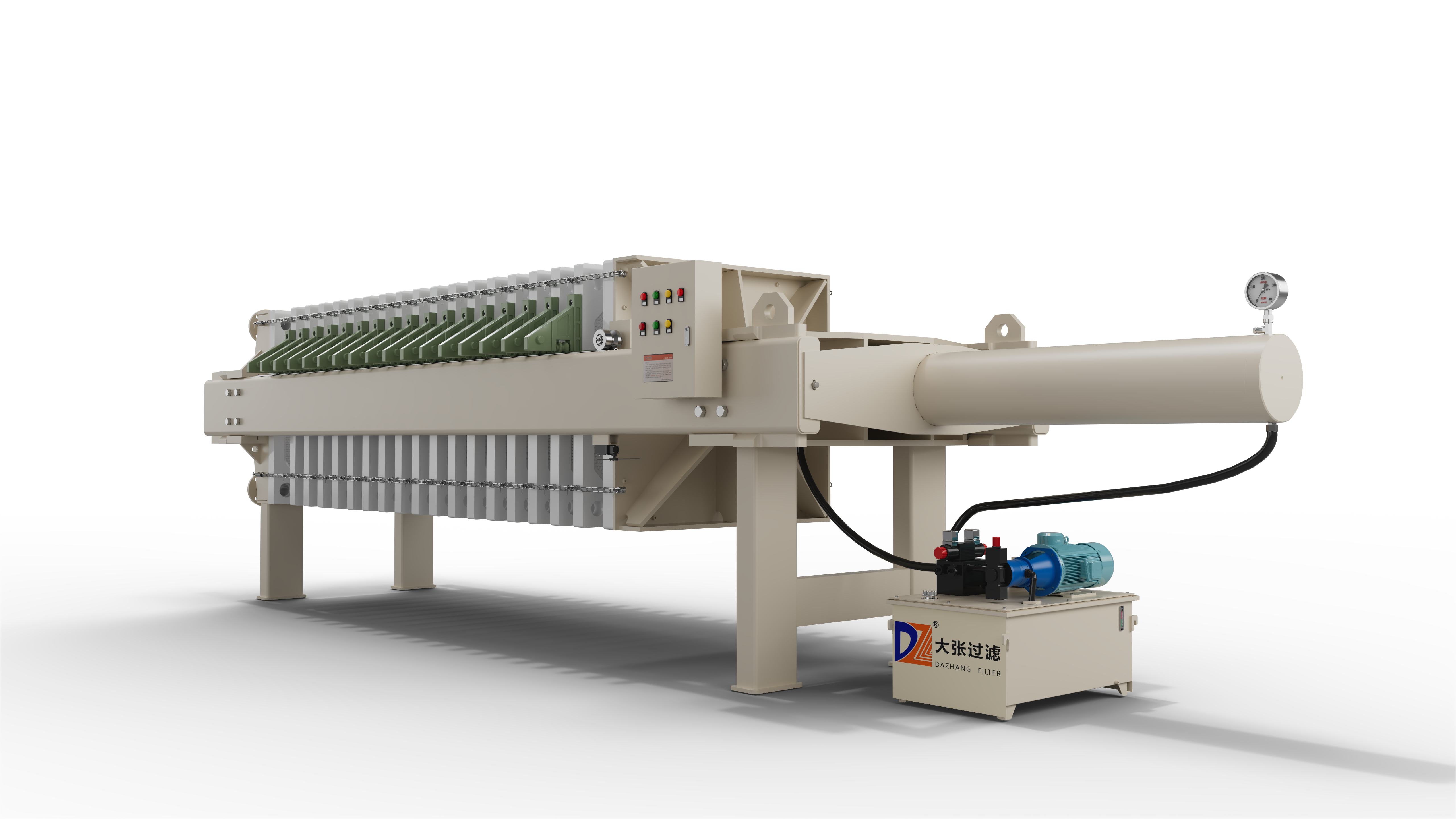 一次快速拉開壓濾機(jī),采用加長型的油缸驅(qū)動(dòng),配合加長機(jī)架,通過不銹鋼鏈條(或滑片)帶動(dòng)連接每一塊濾板,在壓緊板的帶動(dòng)下實(shí)現(xiàn)濾板的一次性全部打開。配合自動(dòng)振打裝置,對(duì)等距離拉開的濾板實(shí)現(xiàn)震動(dòng)輔助卸料功能,可實(shí)現(xiàn)全自動(dòng)卸料。